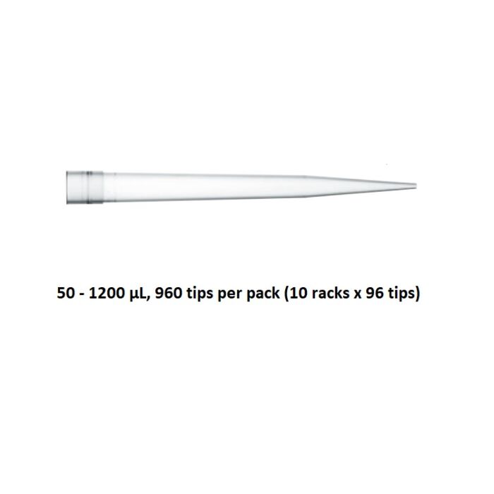 Sartorius Optifit Tip, 50-1200 µl, 71.5mm length, racked, 960/pack (10 trays x 96 tips)