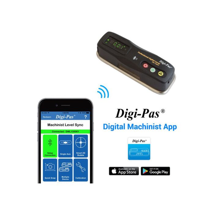 • User may use device without or with Bluetooth Measurement when paired with smartphone & Digi-Pas Machinist level App (Optional)