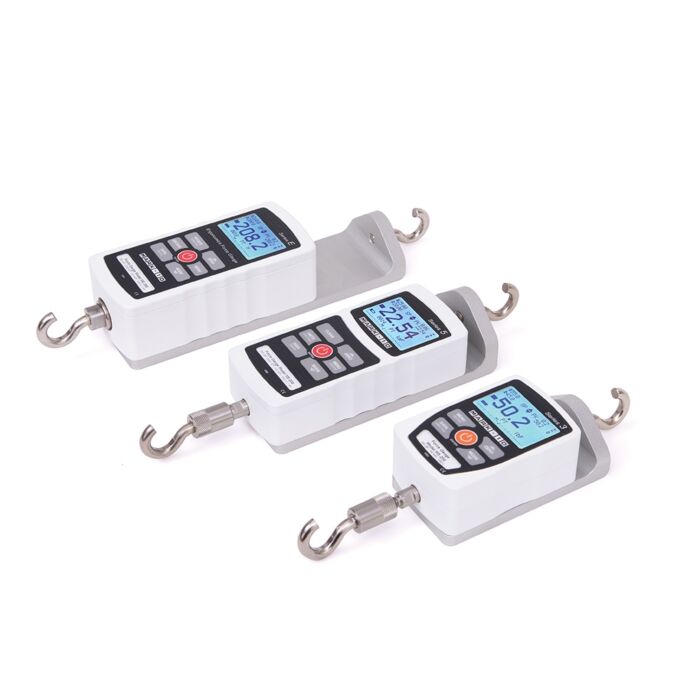 These adapters allow a force gauge to be used in inline pull testing or weighing applications. A 5/16-18 threaded hole at each end is axially aligned with the load cell shaft in the force gauge, for mounting hooks or other attachments. Three adapters are offered, accommodating Mark-10 force gauges with capacities up to 500 lbF (2.5 kN).