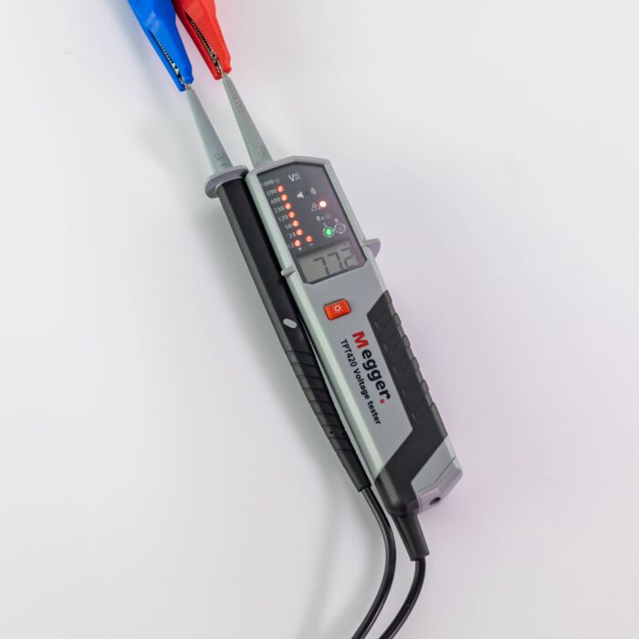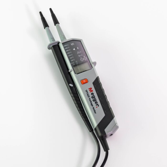 The Megger TPT420 voltage tester is designed to provide electricians and electrical engineers with an easy-to-use voltage indicating instrument. The meter will continue to warn the operator of dangerous test voltages even when the batteries are exhausted. With both LCD and LED displays, the TPT420 provides both AC and DC voltage measurement - from 12 to 1000 V AC and up to 1500 V DC. In addition, a continuity function within the range 0 to 500 kΩ, is included and for added safety, continuity and voltage measurements are also accompanied by an acoustic sounder.