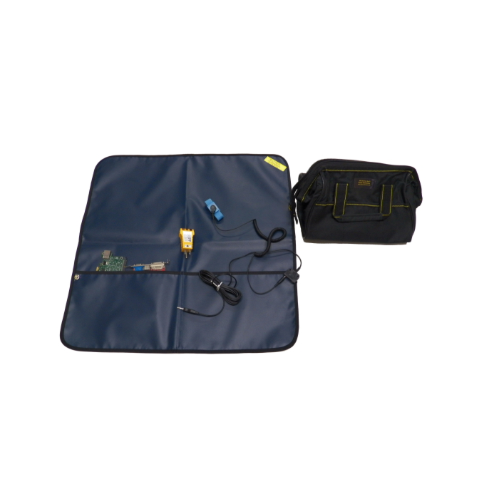 This field service kit offers you a convenient and orderly surface to do the important ESD work that you need to get done. Used to repair and ship circuit boards in the field safely. Fits nicely in our Field Service Bag (shown as an option in the photo) which offers multiple pockets and storage for your tools.