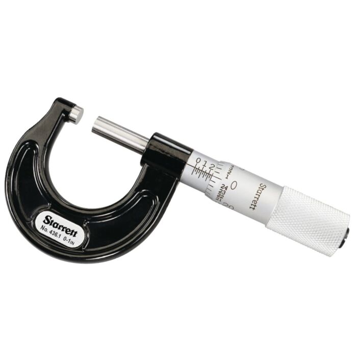 The Starrett 436.1M Outside Micrometer features 0-25mm range and 0.01mm graduation. 0.01mm Grad, Plain.