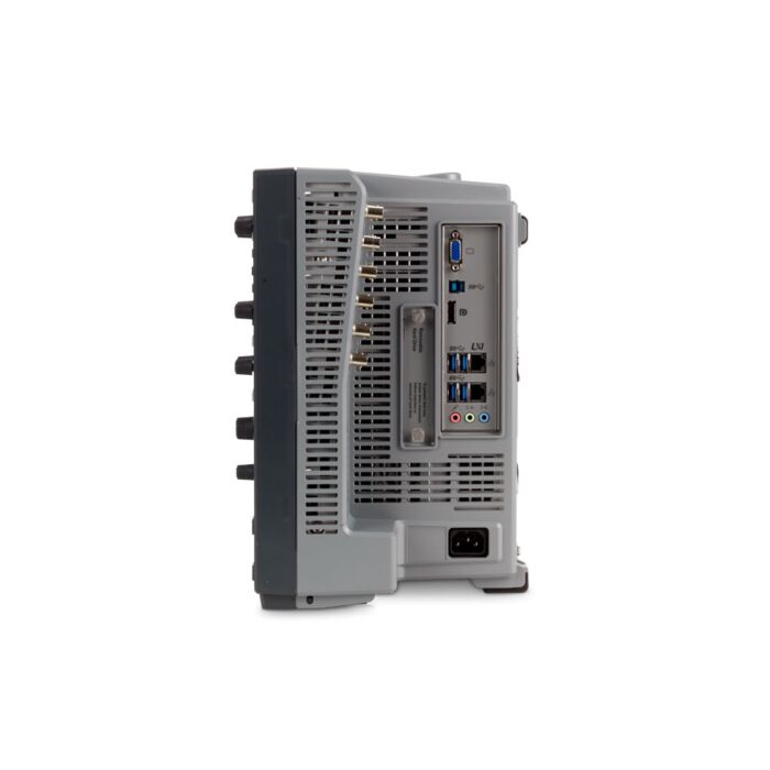 Each model incorporates a 10-bit ADC with a sample rate of 16 GSa/s available on all channels simultaneously. A high-resolution ADC's usefulness is dependent on the low-noise front end that supports the additional quantization levels. Our low noise front end includes custom ICs, like the 130 nm BiCMOS IC that incorporates user-selectable analog filters and bandwidth upgrades via a software license. This gives you: