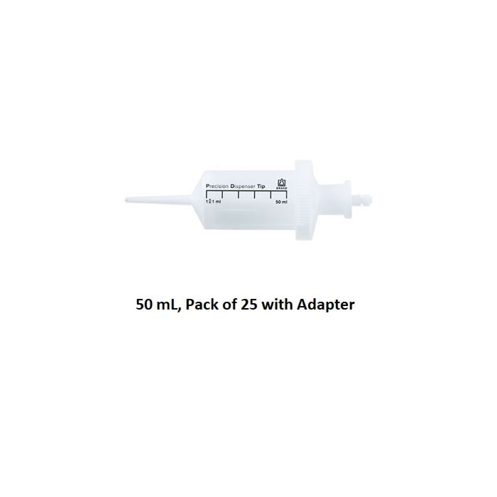 BrandTech PD-Tip™ II syringe tips, 50 mL, non-sterile, pack of 25, includes one adapter