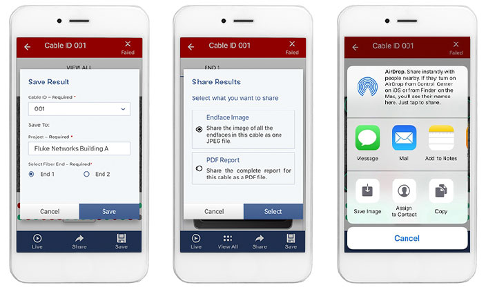 The FI-3000 camera when used with a Versiv mainframe also works with LinkWare - the defacto industry standard for documenting cabling systems. LinkWare lets you combine Tier 1, Tier 2 and inspection results into a single report for full documentation of every link in the system. The cloud-based version, LinkWare Live, makes it easy to track progress of the job from your smartphone or PC and share results with customers.