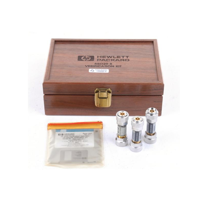 The Keysight 85029B verification kit contains a set of precision 7 mm devices, with data traceable to NIST, used to verify the calibrated performance of a Keysight 8753 measurement system. Measuring known devices, other than the calibration standards, is a convenient way of verifying that the Keysight 8753 measurement system is operating properly. The devices have precision 7 mm connectors and include a 20 dB pad, a 50 dB pad, and a mismatch attenuator. The verification process requires only a Keysight 85031B calibration kit, and a Keysight 85029B verification kit. Option 001 is intended solely for use with the Keysight 8702B lightwave component analyzer. Option 001 adds verification data that is compatible with the Keysight 8702B.