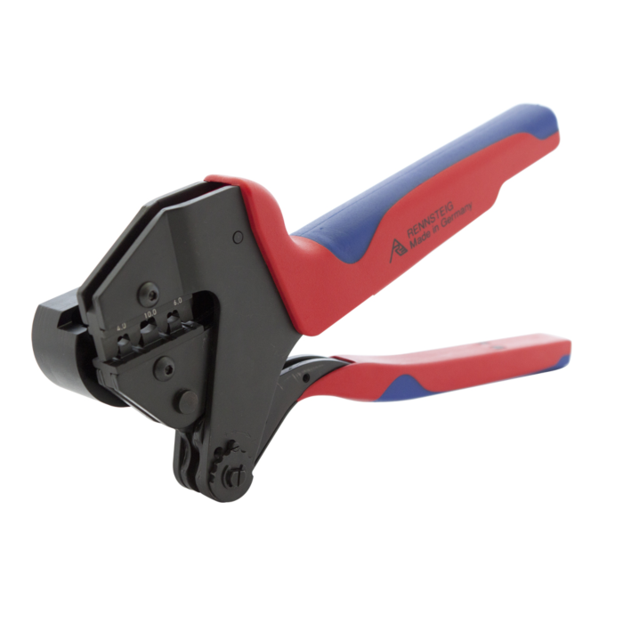 (Solarline 2). The excellent handling, easy exchange of the crimping insert bits and the possibility of adding a positioning aid are facts in favour of these crimping pliers.