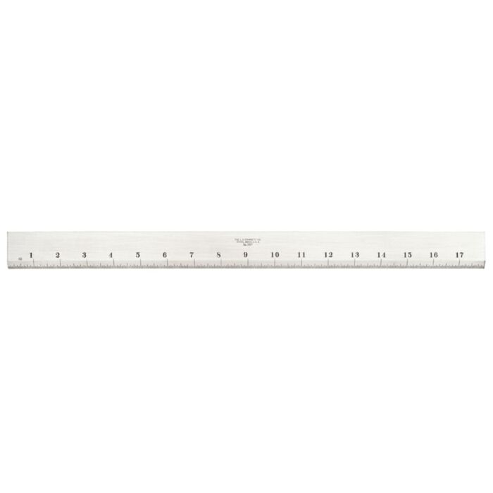 The Starrett 387 Series Steel Straight Edge with Bevel and Graduated End is precision ground and nicely finished to rigid Starrett standards. It is unexcelled for drawing or scribing straight lines and checking surfaces for straightness. Its thickness and design permits it to retain its shape and accuracy, but still be portable and easy to handle. 18" (450mm).