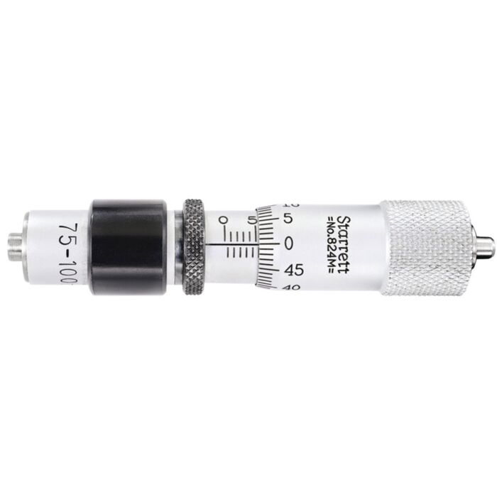 The Starrett 824 Inside Micrometer is for those who prefer inside micrometers without interchangeable rods. The 824 and 824M Series can be ordered individually or in sets. 75-100mm Range, 0.01mm Grad.