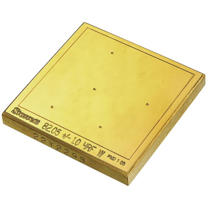 RF100 Test Block - Starrett blocks can be used to test Rockwell scales. They are available in steel, brass and aluminum. Each block is serialized, with a certificate detailing the environmental conditions used to test the block. Actual readings are given, with the averages of these readings: min. reading, max reading and a repeatability figure. The blocks are calibrated according to ASTM E-18 standards, ANSI (NCSL) Z540-1, (ISO) 10012-1, ISO/IEC 17025 and Mil-std 45662A. Test Block RF80 The blocks are calibrated according to ASTM E-18 standards, ANSI (NCSL) Z540-1, (ISO) 10012-1, ISO/IEC 17025 and Mil-std 45662A.